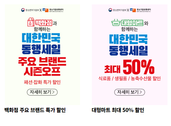 대한민국 동행세일에는 전국 전통시장과 소상공인뿐 아니라 주요 백화점, 마트 등 대형 유통업체들이 대거 참여해 대대적인 대박 할인 행사를 한다고 합니다.