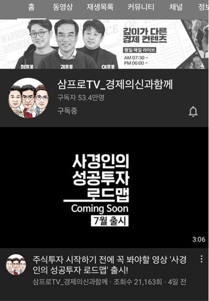 4) 삼프로 TV : 경제 각 분야의 전문가 초대해서 인터뷰하는 형식의 유튜브
