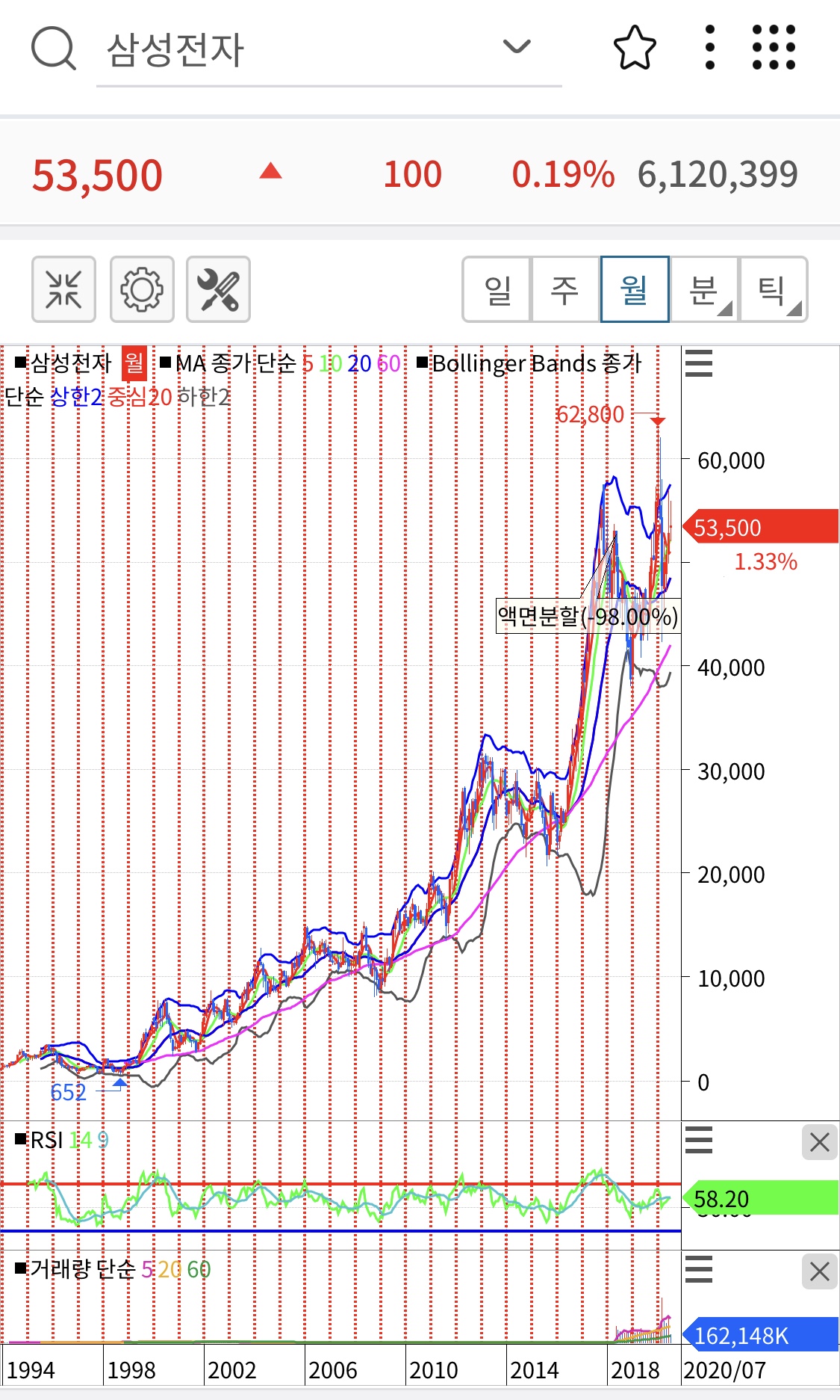삼성전가 1994년~현재 주식 차트