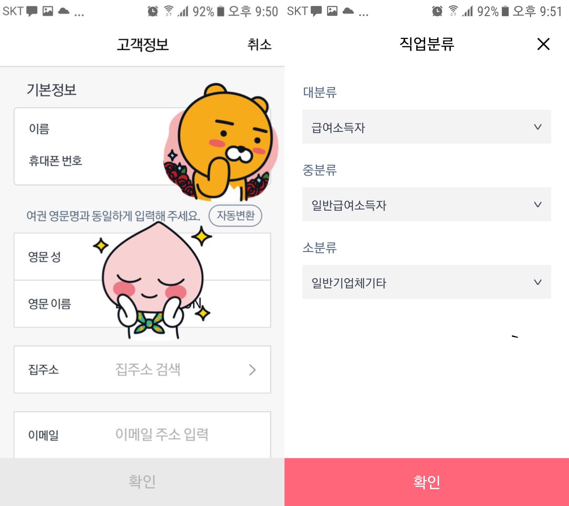 간단한 정보들을 입력 입력 다음 다음 하면 진행이 되기에 10분 내외로 진행 하실 수 있습니다.