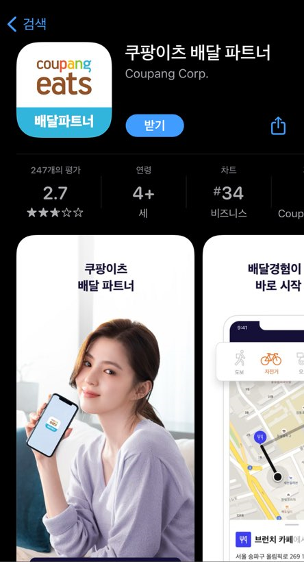 - '쿠팡이츠 배달 파트너' 앱을 받아 이용하실 수 있습니다.